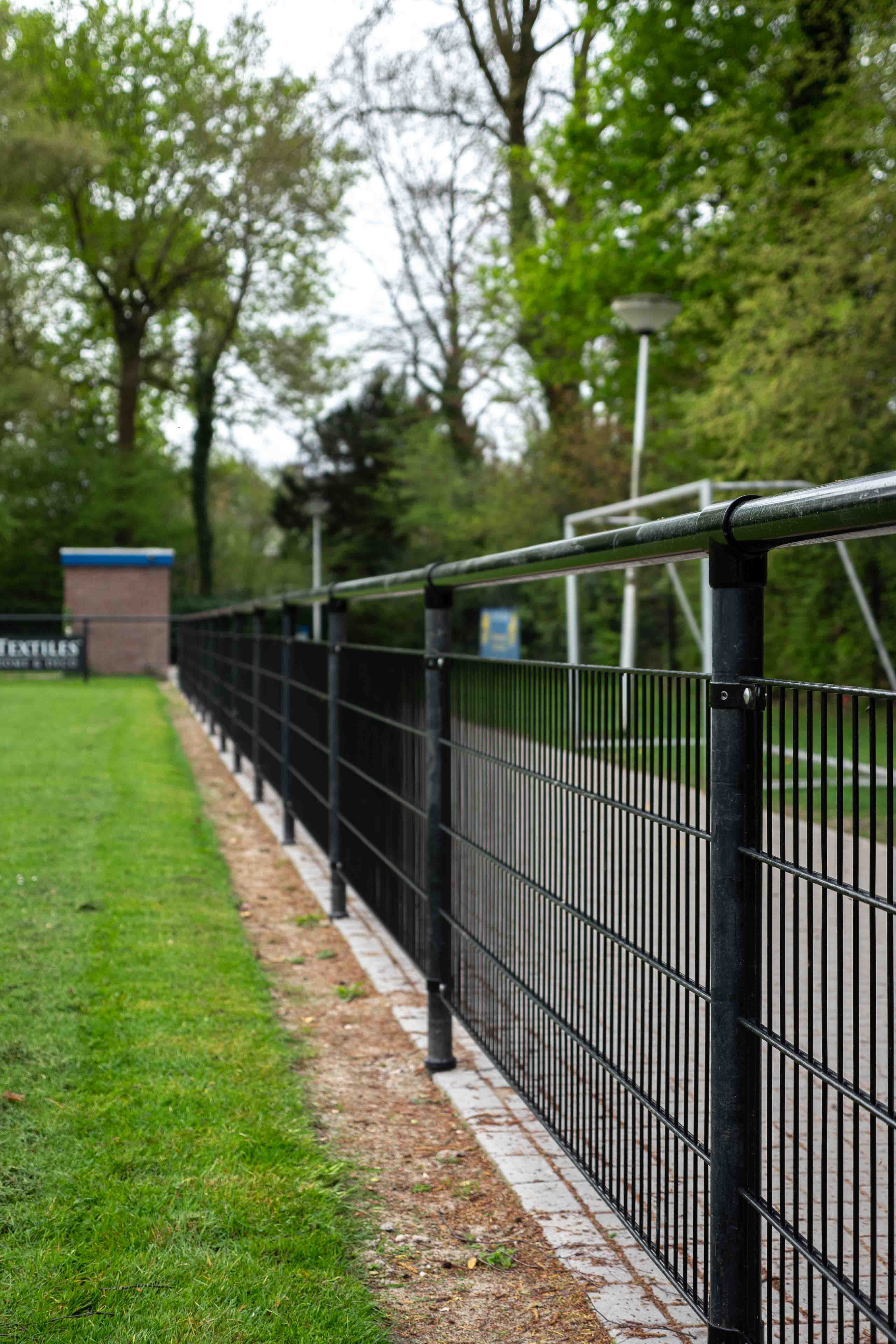 Voor Luctor Et Emergo in Almelo heeft Hekwerkonline een uitgebreid hekwerk rond het voetbalveld geïnstalleerd. Dit project ging in samenwerking met de gemeente Almelo. De omheining bestaat uit 280 meter leunhekwerk van 120 cm hoog en een draaddikte van 8/6/8 mm. Er is gekozen voor zwart 9005 hekwerk, wat resulteerde in een moderne professionele uitstraling.