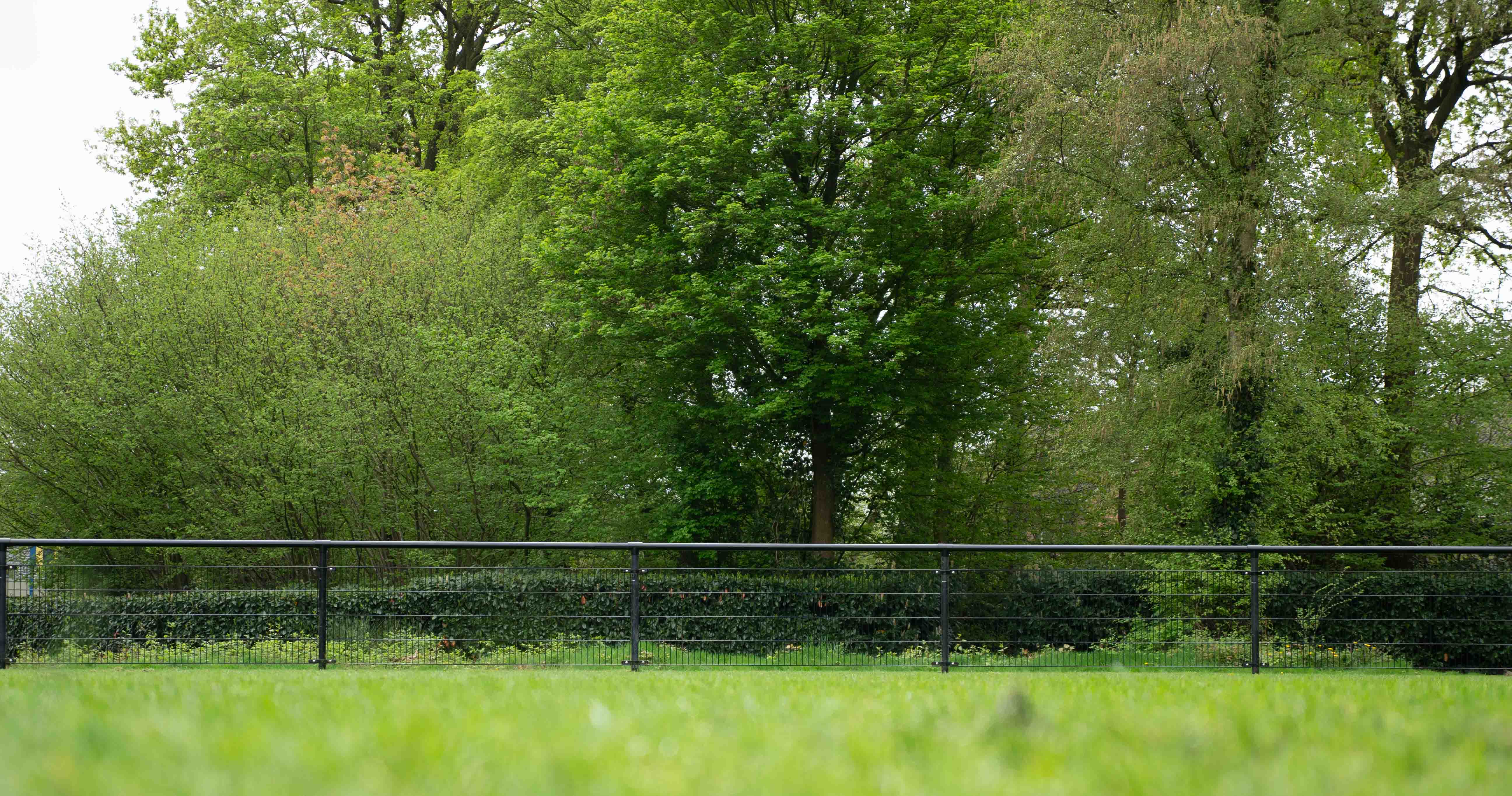 Ook is er een enkele draaipoort geïnstalleerd voor een makkelijke en veilige doorgang naar het veld. De poort heeft een breedte van 1 meter en dezelfde zwarte 9005 coating voor een uniforme uitstraling.